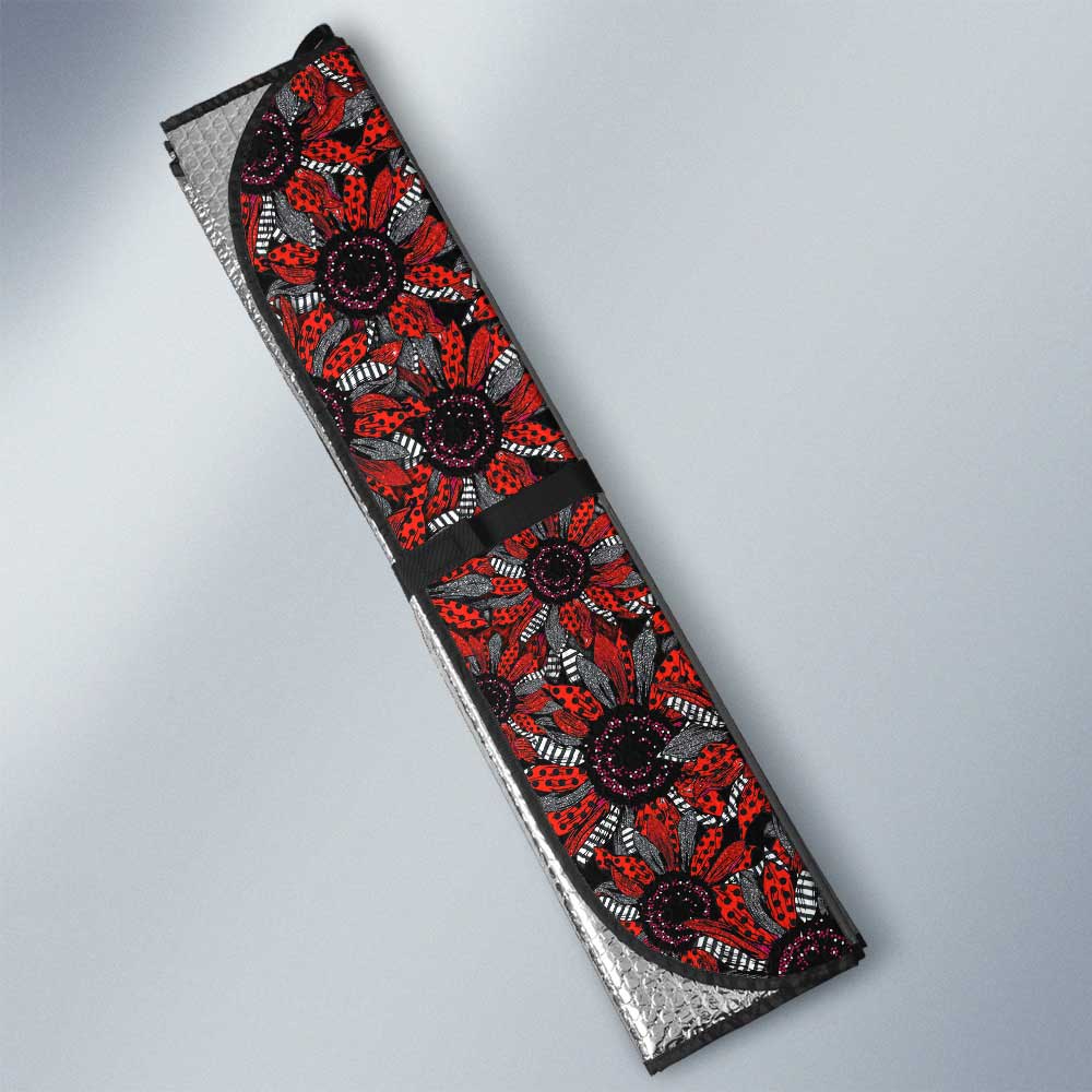Red And Black Sunflower All Over Print Car Sunshade